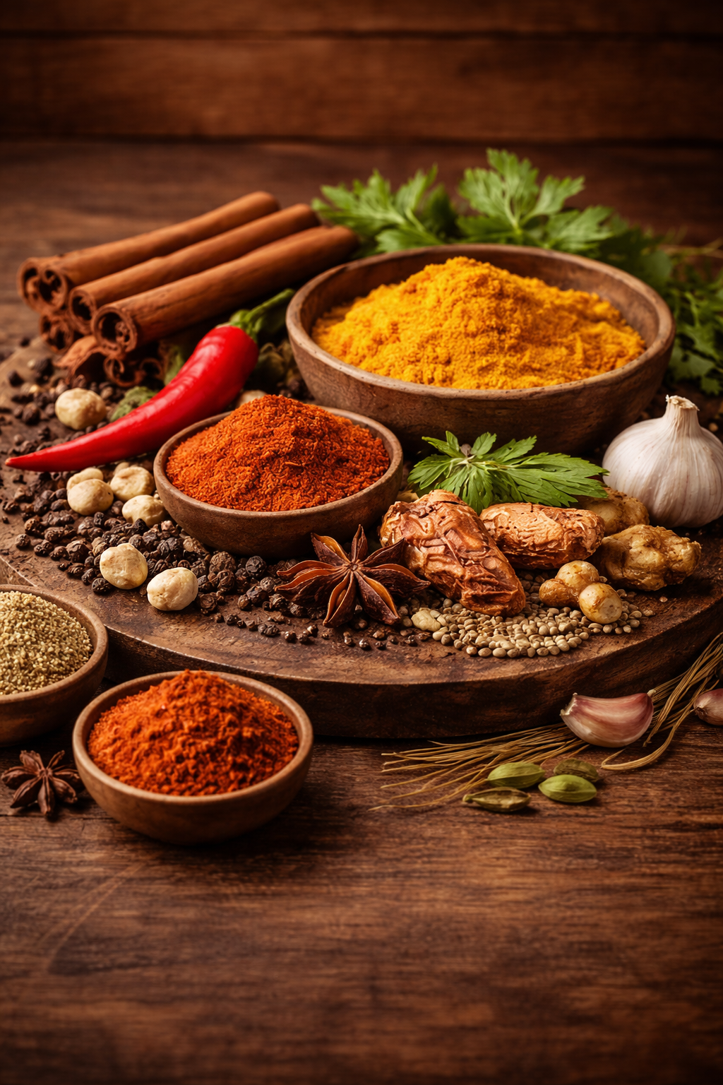 High-quality whole and powdered spices sourced from trusted suppliers and processed for global distribution.